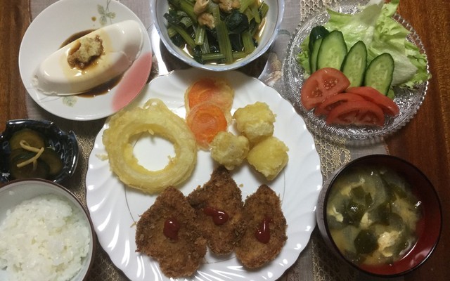 晩御飯はとんかつでした。 ほかの副菜はサラスパとツナとキュウリのサラダ、タコと里芋の煮物、 豆腐とわかめの味噌汁、ご飯少量。それとイチジク。 食卓にあるお好みソースはフジの株主優待です。 お好みソースととんかつソースってどう違うのだろう? 唐揚げの献立におすすめ!副菜レシピ 1マカロニサラダ ハムやきゅうりを入れて具だくさんに。 材料 (大人4~5人分) マカロニ 1g ハム 2枚 ゆで卵 2個 きゅうり 1本 にんじん 1/5本 コーン(缶詰) 大さじ3 A 顆粒スープの素 小さじ2 砂糖 小さじ2 14年4月27日 (日) 「ソースカツ丼」の献立 今夜は子供も男性も喜ぶ甘めのソースをたっぷりかけるガッツリソースカツ丼。 サラダは冷蔵庫で食べる直前まで冷やしましょう。 主食 ソースカツ丼 副菜 ひんやりトマトサラダ スープ・汁 ワカメのスープ